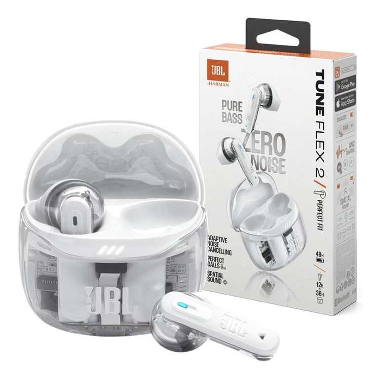 JBL Tune Flex 2 ANC 4 Mic Crisp Clear Call Earbuds Ghost White
